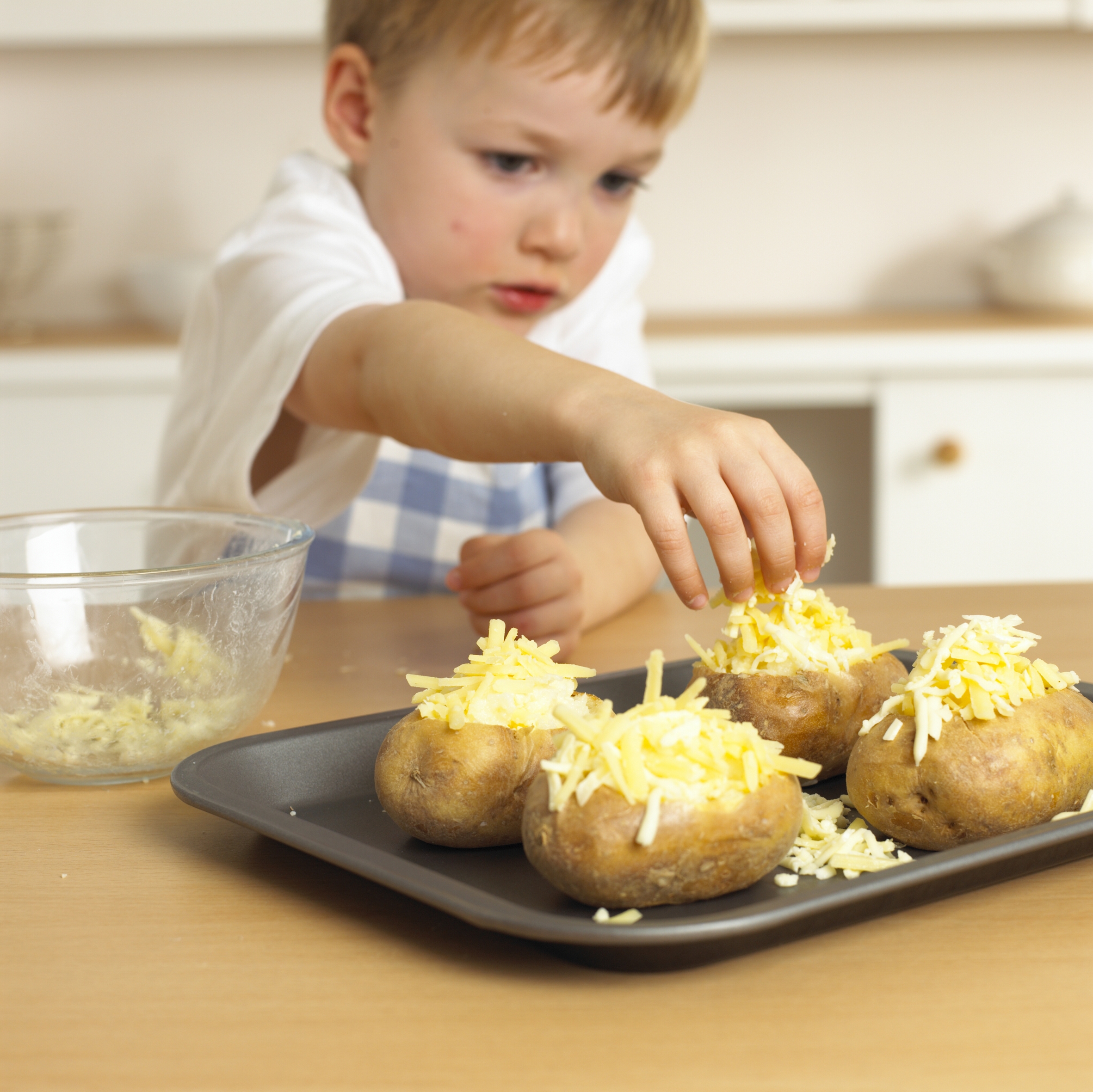 I came across a wonderful example of a really good kids cookbook: “Mom and Me Cookbook” by Annabel Karmel (http://www.annabelkarmel.com/usa), available on Amazon.com. The photography is great, the font is child-friendly and the recipes are creative but still stuff you’d really make. You’ll find both straight-forward recipes such as “Sweet and Sour Chicken” as well as recipes for the high-achievers out there like the adorable “Potato Mice” (twice baked potatoes with radish-slice ears and chive-whiskers). I particularly liked Sunny Scrambled Eggs (with buttered toast “rays”), Avocado Frog dip with veggies to plunge and Chocolate Fridge Cake with dried fruits and nuts.